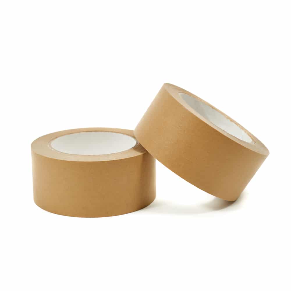 Cinta ECOPAPER de 50 mm x 50 m en color marrón con adhesivo solvente. Fabricada con papel reciclado, es una solución ecológica para embalaje y cierre de cajas, garantizando resistencia y adherencia en diversas superficies.