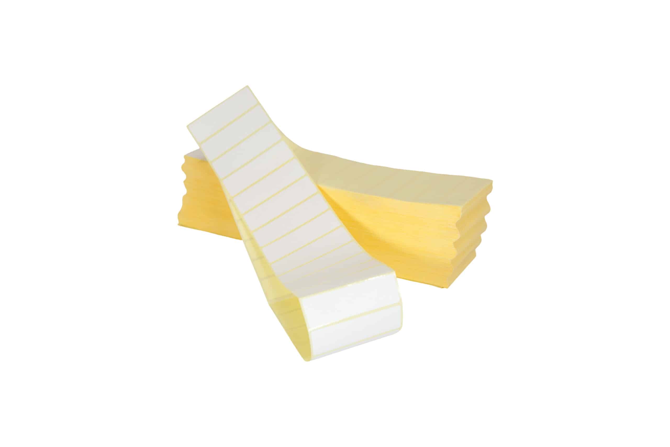 Las etiquetas adhesivas plegadas de papel blanco térmico están diseñadas para impresión térmica directa, sin necesidad de ribbon. Su superficie blanca y lisa permite obtener impresiones claras y nítidas de textos, códigos de barras y logotipos.